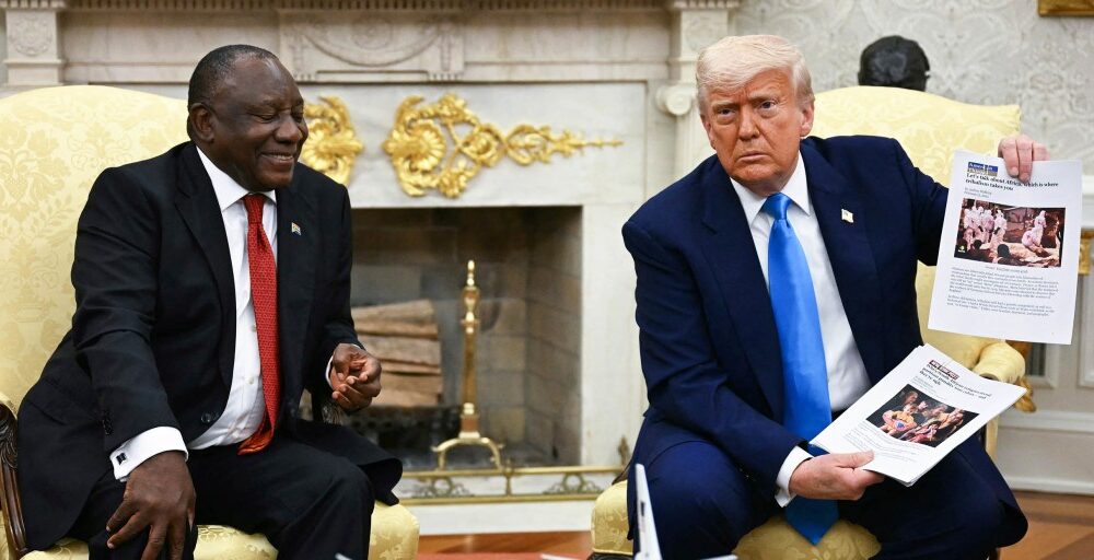 President Donald Trump showed a screenshot of the video to South African President Cyril Ramaphosa as part of what he falsely presented as proof of mass...